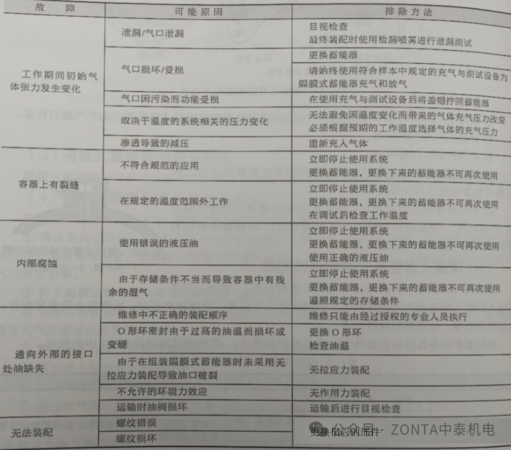 蓄能器的常見故障及排除方法