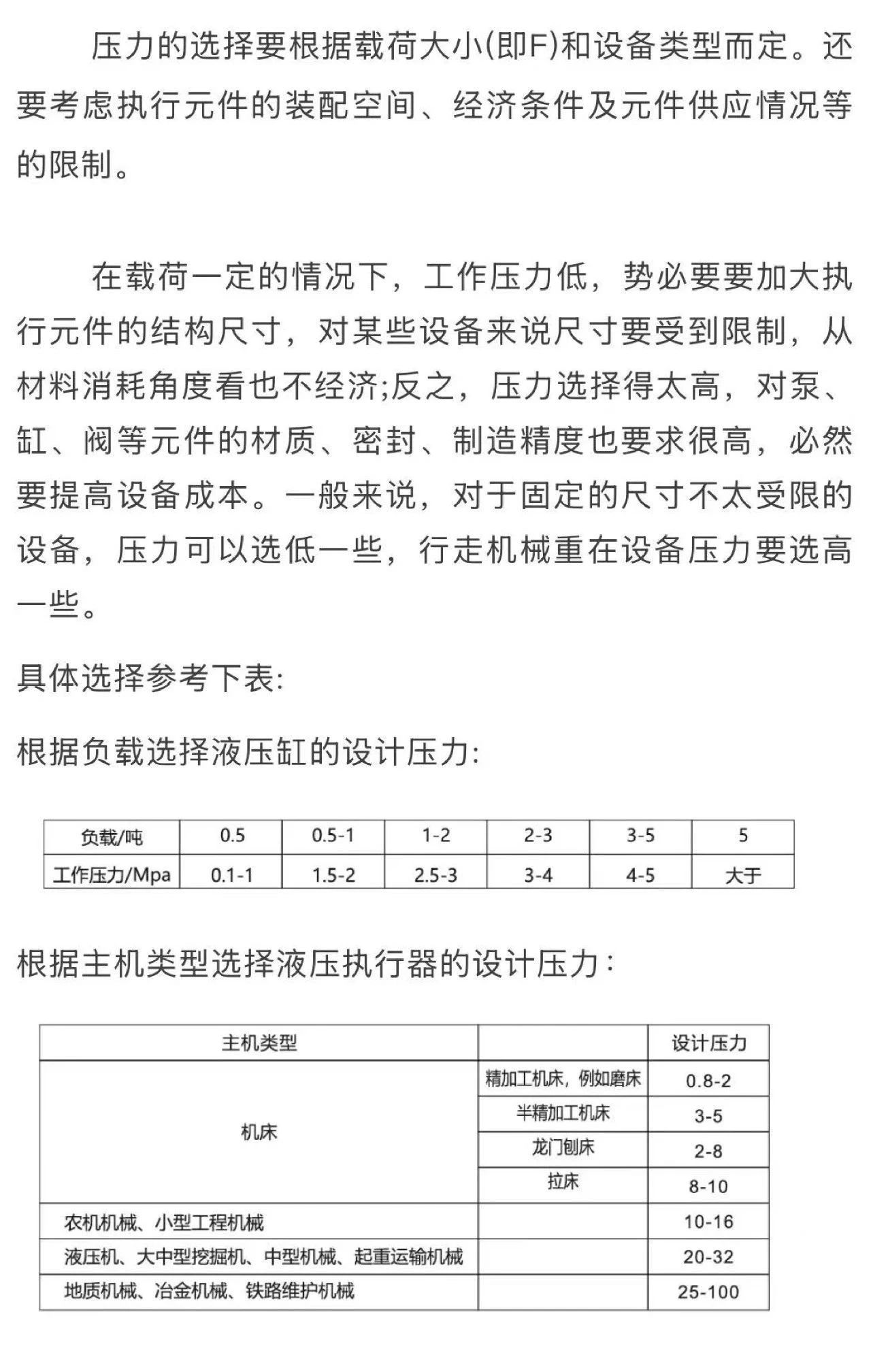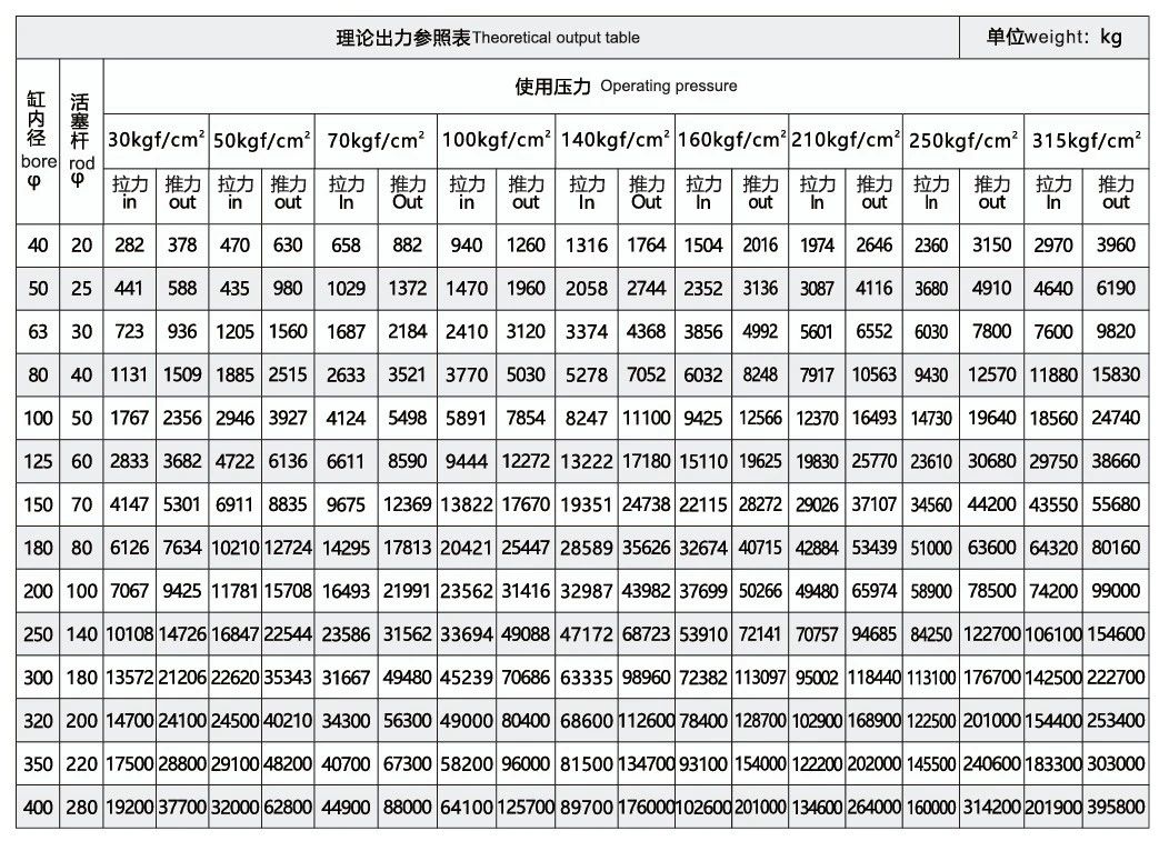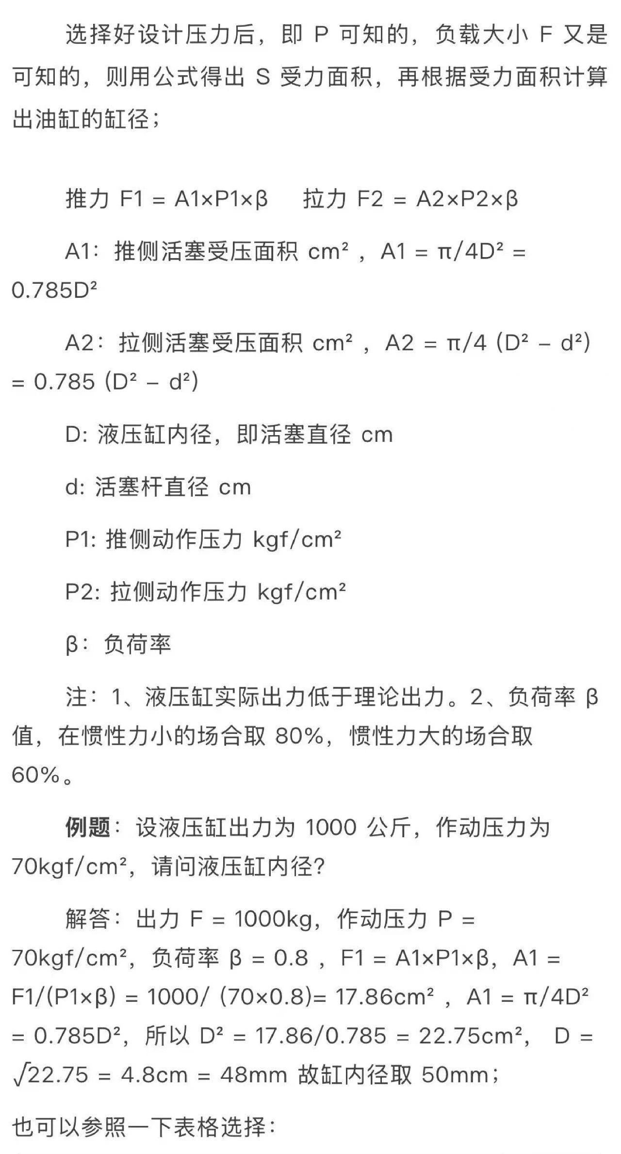 2、初選缸徑D/桿徑d