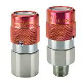 H 系列快換陰接頭,承壓(液壓)可達(dá)10,000 psi,能夠符合液壓工具制造協(xié)會(huì) (HTMA) 標(biāo)準(zhǔn)要求,并且能與FH系列陽接頭配合連接。派克 FH 系列是高壓無溢流型快換,因此不能與低壓快換接頭配合連接。紅色表面能夠使得這些快換接頭容易作為高壓快換 (10,000 psi) 作為識別。陰接頭有套筒鎖功能,減少意外斷開的情況??鞊Q陰接頭與陽接頭目前可供尺寸僅 3/8"