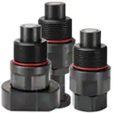 派克FET系列是高壓(6000 psi) 無溢流型快換接頭。該系列快換的陰接頭套筒與陽接頭本體需使用螺紋手動連接起來,完成配合連接。該系列快換接頭結構堅固耐用,使用高強度材料制造,能夠有效地耐沖擊影響。