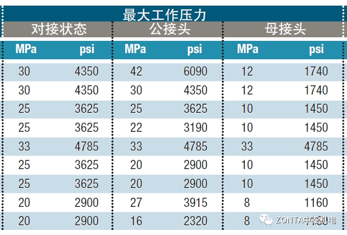 對接狀態(tài)的工作壓力&斷開狀態(tài)的工作壓力