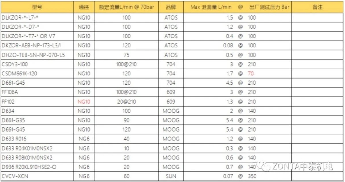 文末,對(duì)于一些伺服閥/比例的泄漏量也做了統(tǒng)計(jì)對(duì)比。